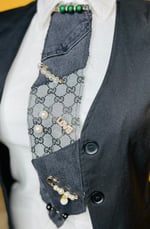 Elevate your wardrobe with this stunning handmade Gucci women’s necktie, crafted in a sleek black and light-gray palette for a refined yet modern appeal. Designed with intentionally rugged, raw-cut edges, it blends luxury with a bold, fashion-forward twist. The lightweight fabric drapes beautifully, making it perfect for pairing with blouses, blazers, or minimalist dresses. Whether worn for a chic office look or as a standout accessory for evening styling, this necktie brings an effortless blend of sophistication and contemporary edge—ideal for women who love timeless fashion with a touch of individuality.