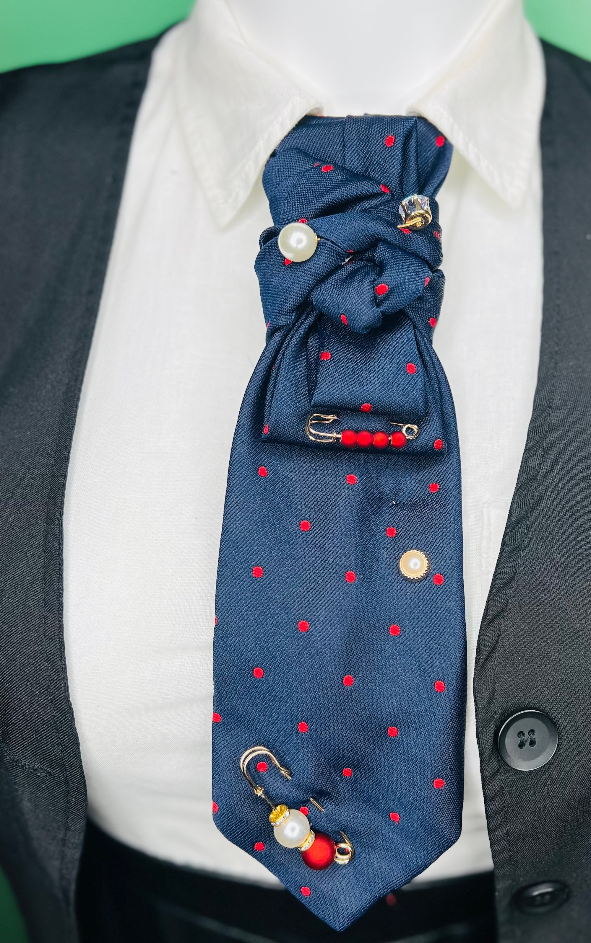 Add a touch of refined elegance to your wardrobe with this handmade women’s necktie, featuring a deep navy blue base beautifully highlighted by a bold red accent. The classic color combination brings a timeless yet modern feel, making this accessory the perfect statement piece for both professional and creative outfits.